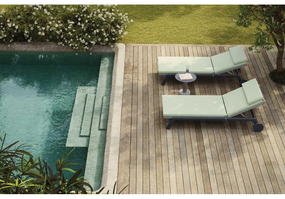 Molo designed by Rodolfo Dordoni for Kettal is a lounger with an aluminum frame covered in synthetic canvas. The cushions are padded and covered in fabric suitable for outdoor use. Molo is available in different finishes and versions.