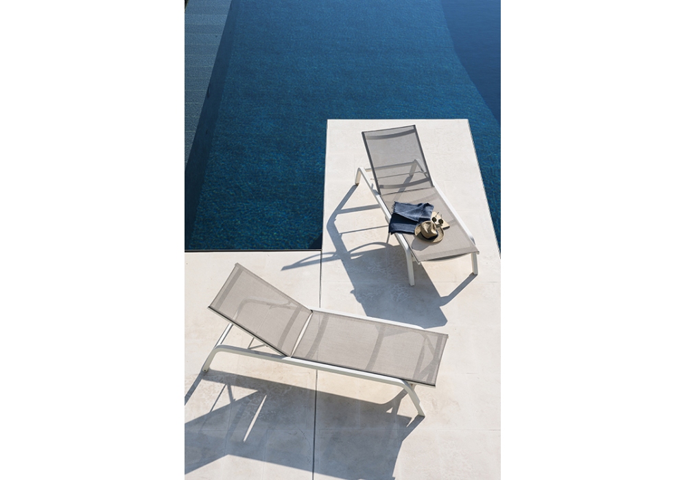 Surfer designed by Roda Studio is a sunlounger with aluminium structure and batyline upholstery available in 2 finisheh.