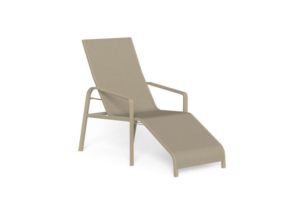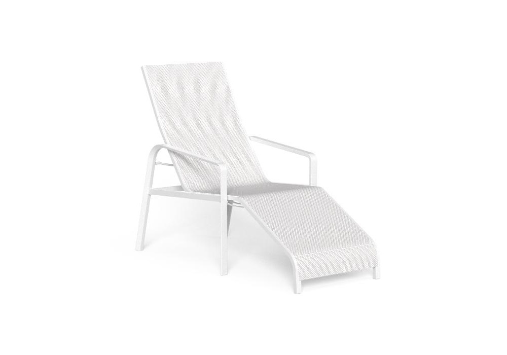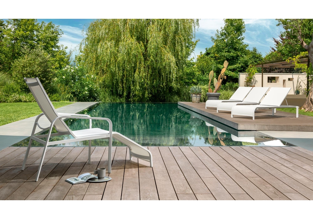 Milo designed by Marco Acerbis for Talenti is a deck chair with a powder coated aluminum structure, seat in textilene.