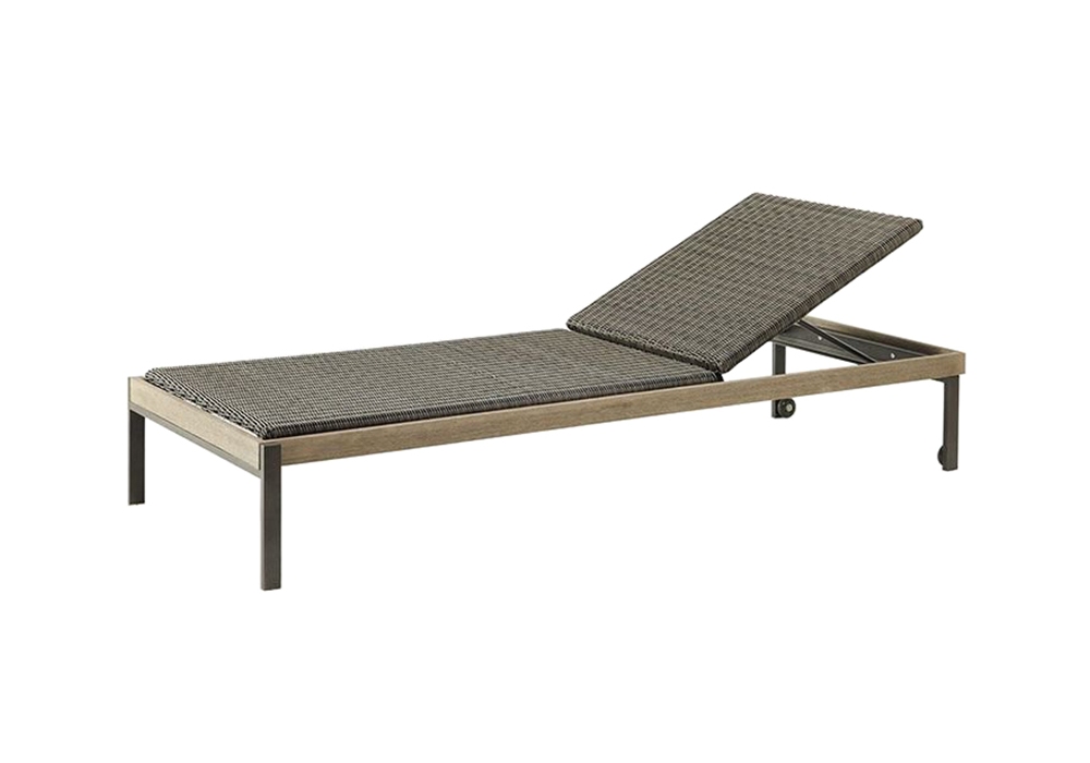 Allaperto Mountain designed by Matteo Thun, Antonio Rodriguez for Ethimo is a sunbed made of pickled teak wood with etwick fiber covering. The mattress is covered with water-repellent acrylic fabric in an espresso color.