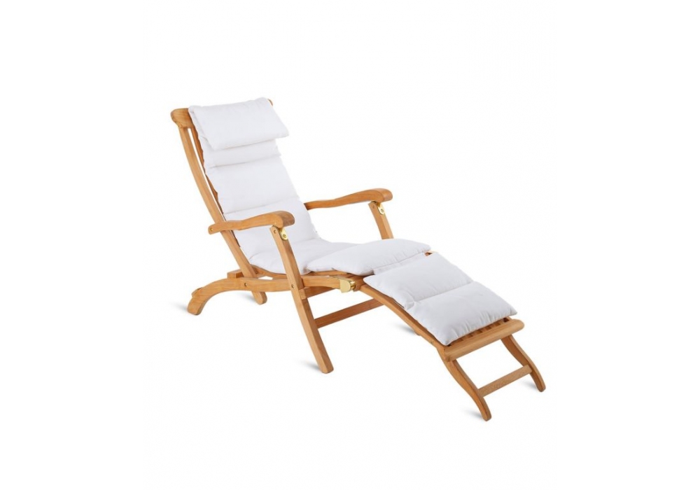 Chelsea produced and signed by Unopiù is a folding chaise longue with natural teak structure and metal joints. The cushions are covered in acrylic material in different finishes.