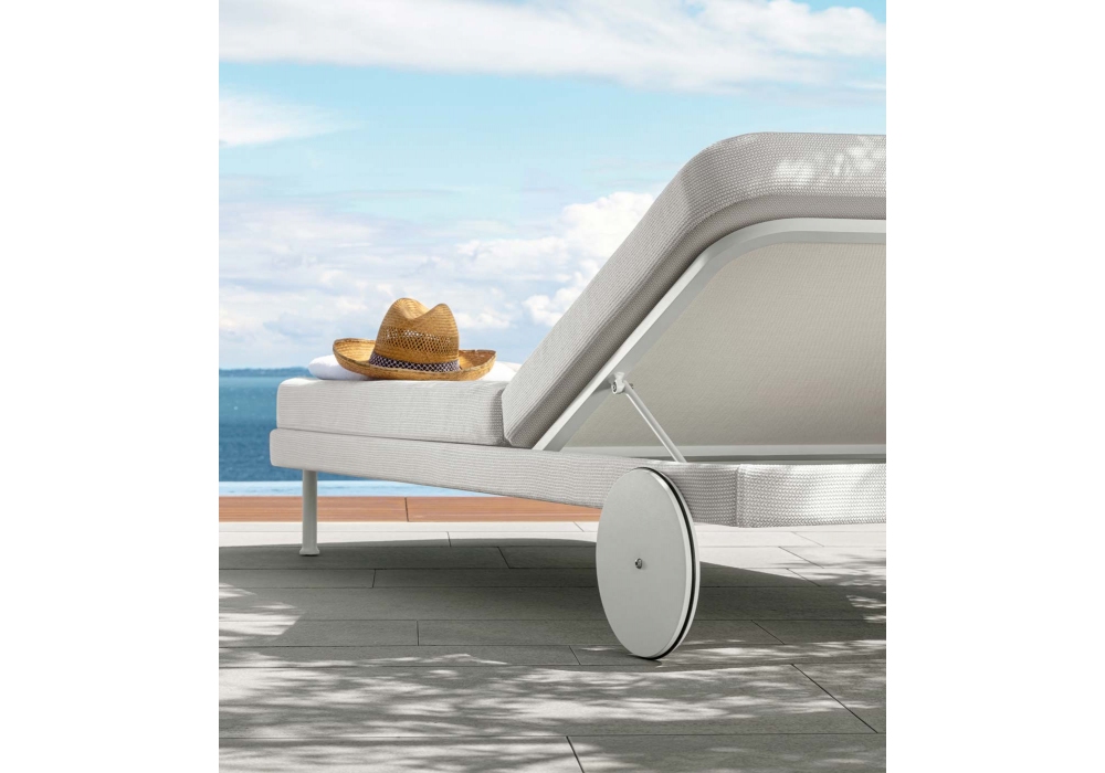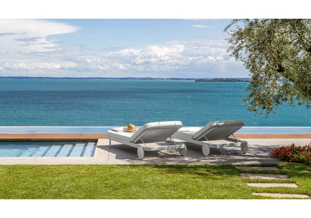 Slam designed by Ludovica + Roberto Palomba for Talenti is a sun lounger with powder-coated aluminum structure available in two colours. Backrest and cushion are removable covers and are upholstered in weather resistant outdoor fabrics.