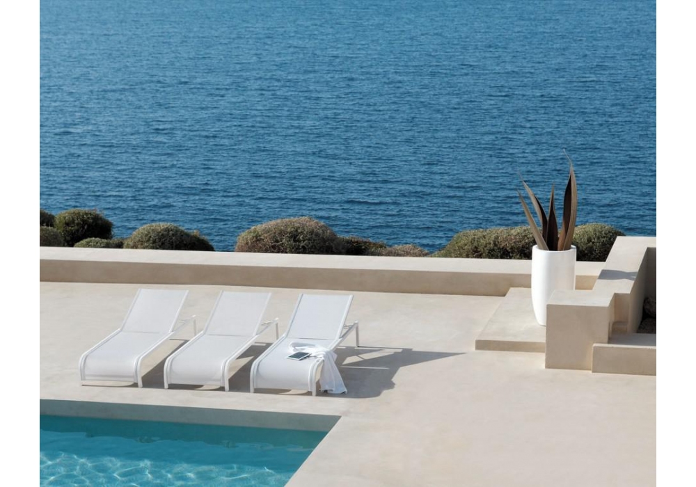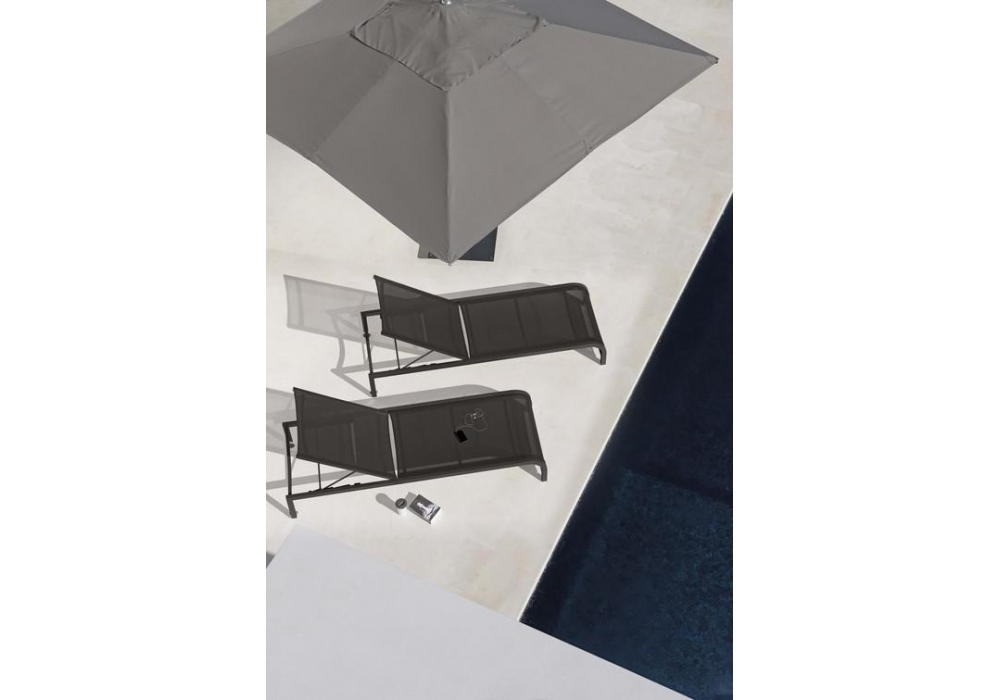 Latona by Manutti is an outdoor sunbed in powder coated stainless steel and fabric. Available in different finishes.