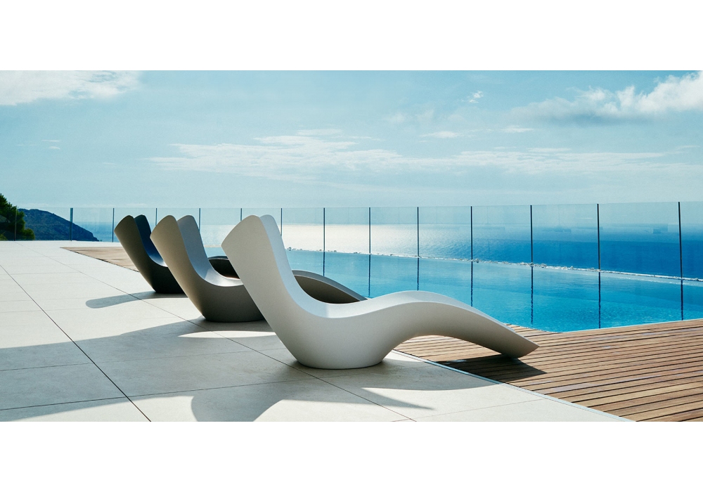 Surf designed by Karim Rashid for Vondom is a sun lounger made in polyethylene resin by rotational molding. 100% recyclable. Item suitable for indoor and outdoor use. Available in different finishes.