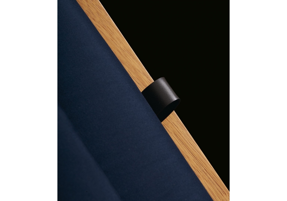 Ketch designed by Jean Marie Massaud for Poliform is a sunbed with structure in solid natural iroko or solid black stained iroko. Seat cushion and back in multi-density polyurethane foam, headrest cushion in polyurethane foam, resin-coated pre-cover with water-repellent canvas. Removable cover in fabric. Metal parts in mat brown nickel painted aluminium and stainless steel. Storage under the backrest equipped with glove compartment covered in technical material.