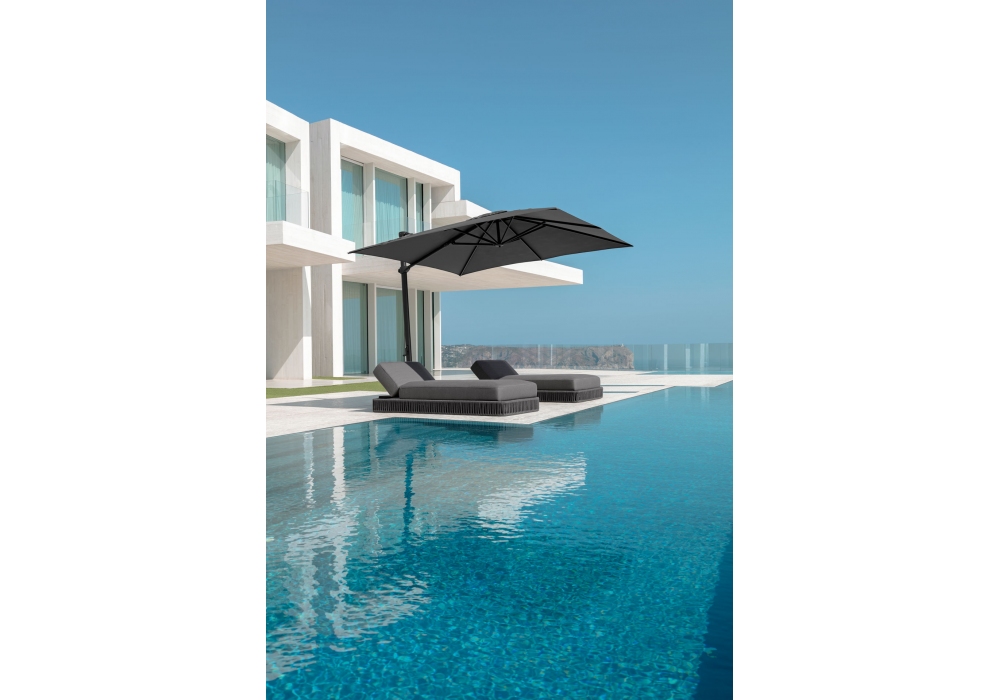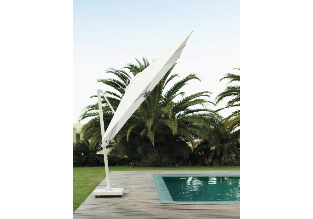- Concrete base (90 kg) with wheels, white or mokka color to match the structure;