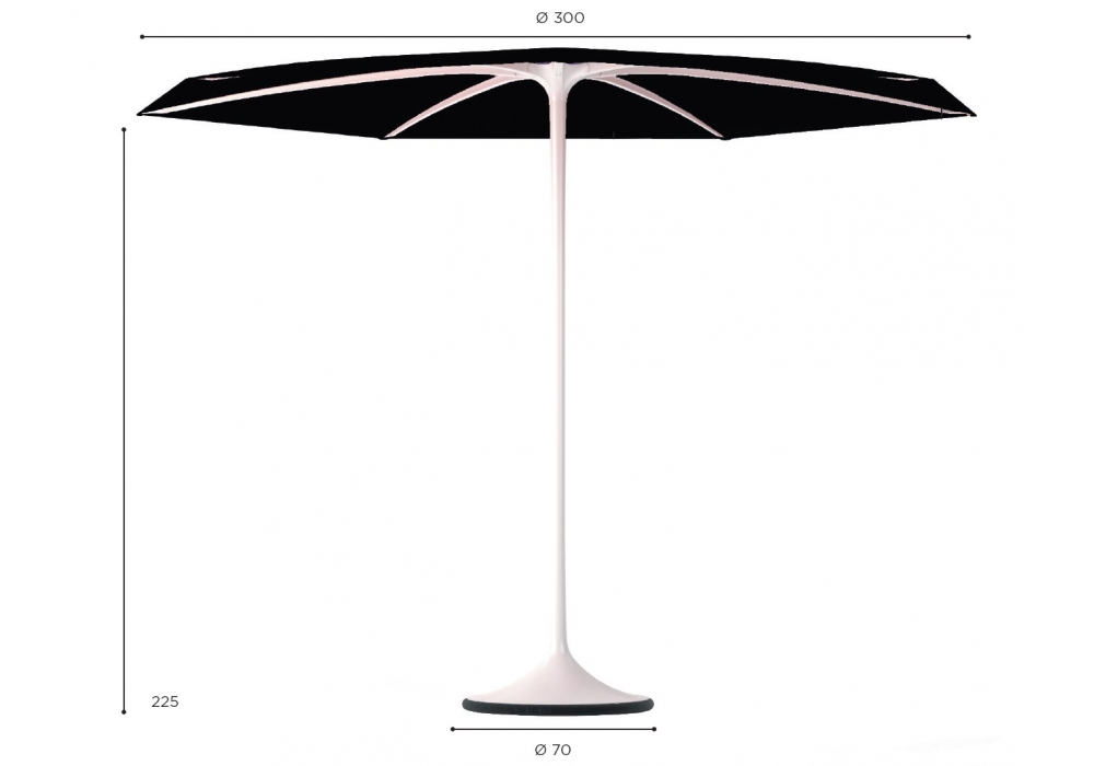 Palma designed by Kris Van Puyvelde for Royal Botania is a sunshade with aluminum structure and fabric covering. Available in different finishes. Ballast included.