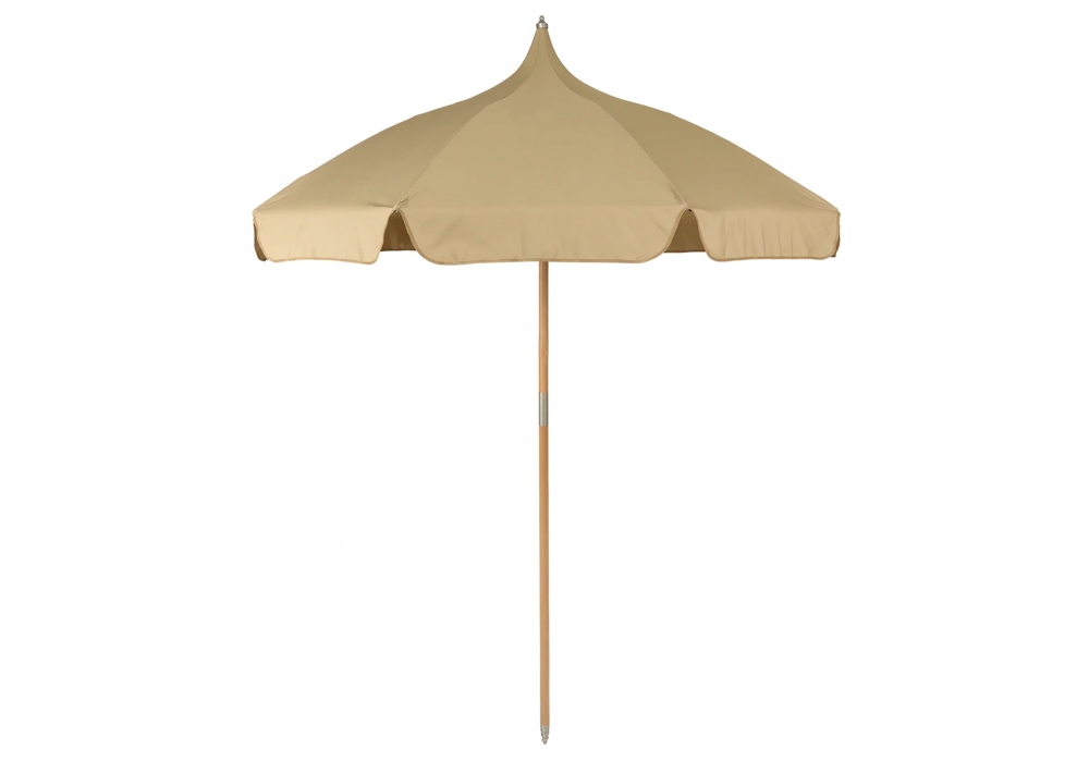 Lull designed by Ferm Living is a sun umbrella made of FSC™ certified French beech wood. Powder coated steel wire ribs. Aluminium connector parts and polyester fabric. Ideal for garden picnics, the beach and everywhere else where you need shelter from the sun. The Lull Umbrella gives UV30+ protection and comes in a handy, matching bag to make transportation easier.