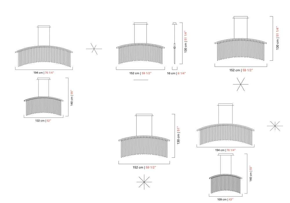 | Dimensions | 152 x 16 x H 130 cm; Ø 152 x H 130 cm; 194 x 132 x H 140 cm; Ø 152 x H 130 cm; 194 x 109 x H 140 cm. |