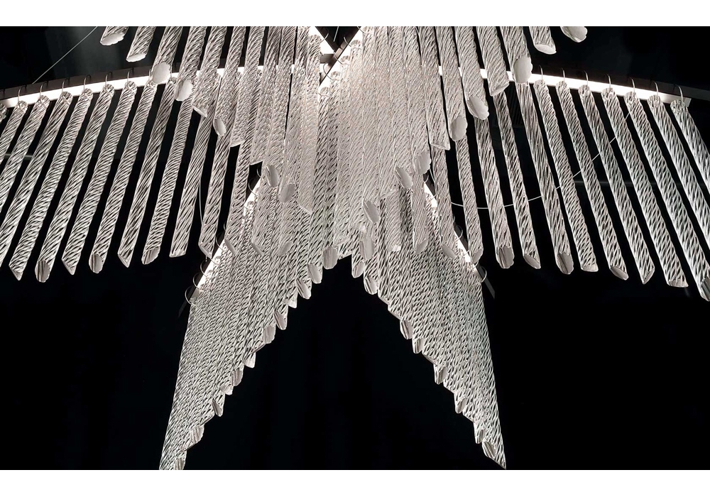 Palmyra designed by Fabio Calvi & Paolo Brambilla for Barovier & Toso is a pendant lamp with supporting structure and metal sealing rings. The pendants are in Venetian crystal and adopt non-dimmable Stripled light sources. Palmyra is available in different models and finishes.