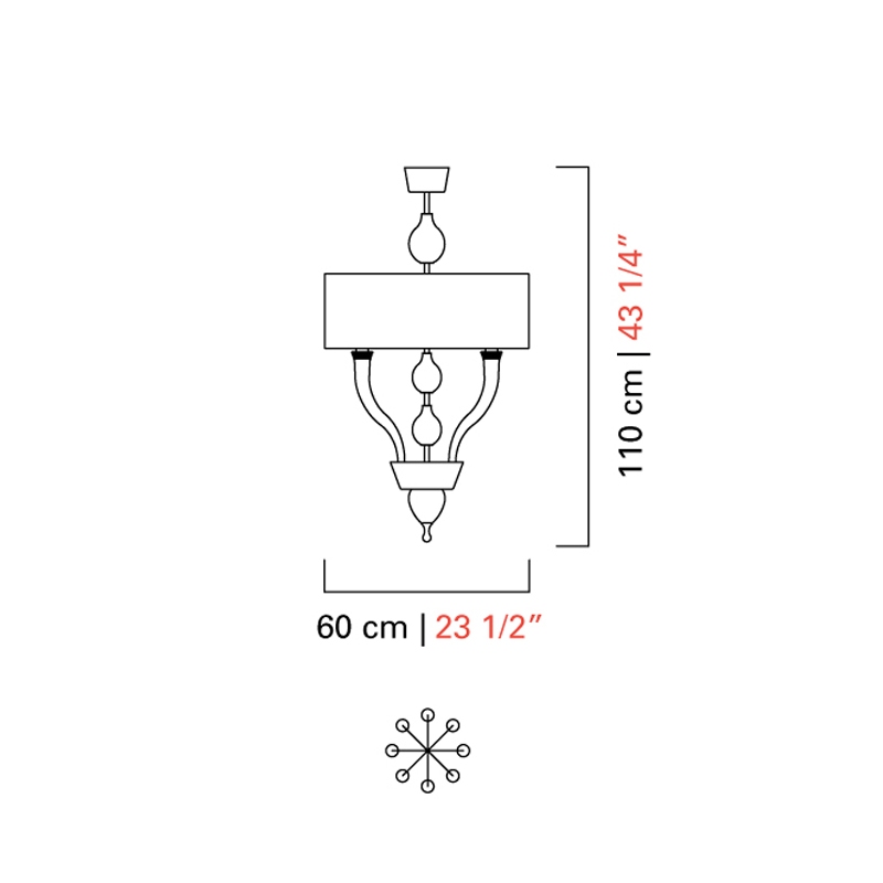 Pandora designed and produced by Barovier & Toso is a pendant lamp with supporting structure and details in metal and lamp body covered in Venetian glass. The diffuser has a cylindrical shape in fabric and shields the dimmable LED or halogen light sources. Pandora is available in different models and finishes.