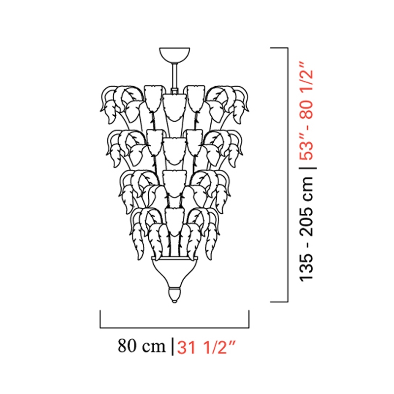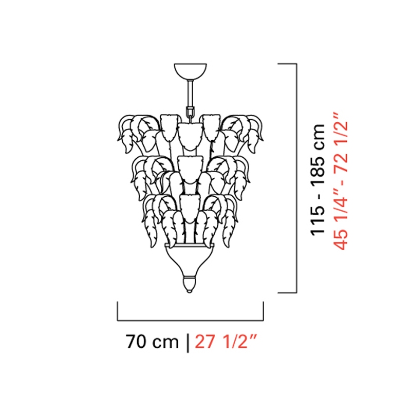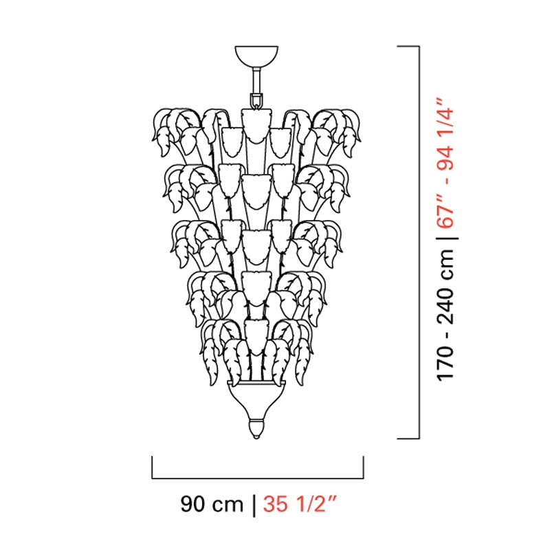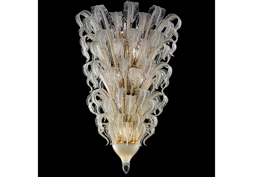 Piume designed and produced by Barovier & Toso is a pendant lamp with metal supporting structure covered with Venetian glass feathers. The light sources adopted are of the dimmable LED or halogen type. Piume is available in different models.