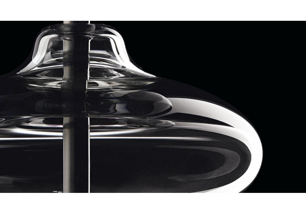 Eva designed and produced by Barovier & Toso is a pendant lamp with metal structure covered in Venetian glass. The lampshade is circular in fabric and shields a dimmable LED or halogen light source. Eva is available in different finishes.