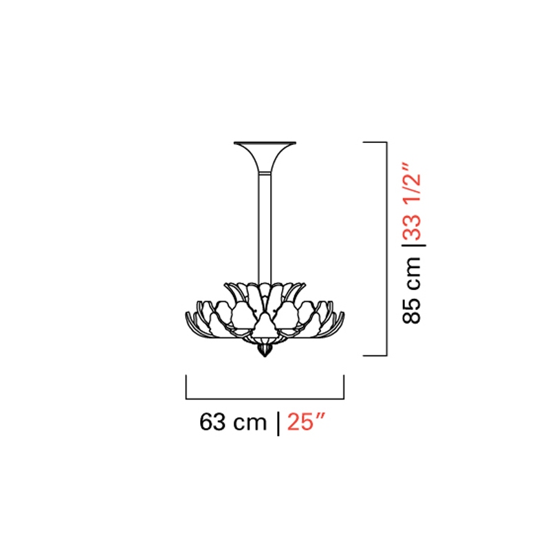 Rex is a suspension lamp designed by Barovier & Toso. High-class ceiling lights, made in three different crystal finishes: dew crystal, golden dew or champagne dew, the metal parts in brushed brass. Rex is available in two sizes.
