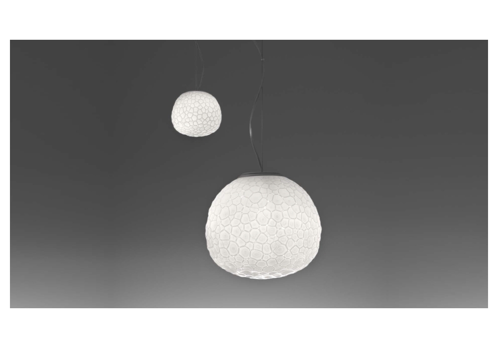 Meteorite designed by Pio & Tito Toso for Artemide is a pendant lamp with supporting structure in technopolymer and steel. The diffuser is spherical in shape and made of blown glass and houses a dimmable LED light source. Meteorite is available in different sizes.