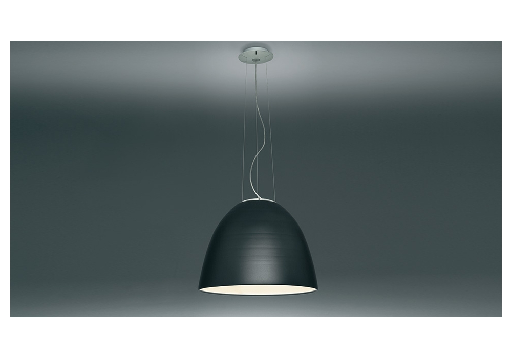 Nur 1618 LED designed by Ernesto Gismondi for Artemide is a suspension lamp with dome-shaped lampshade in aluminum and upper cap in sandblasted glass. The light source adopted is a dimmable LED type. Nur 1618 LED is available in different finishes and shades of light beam.