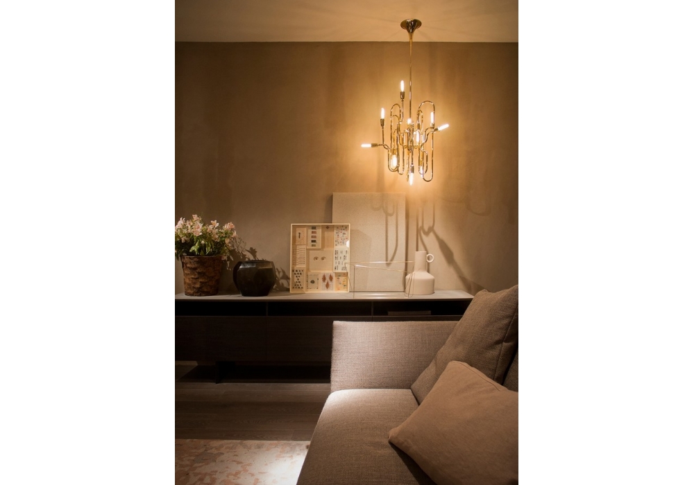 Clark Suspension designed by DelightFULL is a suspension lamp is handcrafted in brass, using the classic method of bending the brass twice into a rounded oblong shape, which allows for a luminous jet of light.