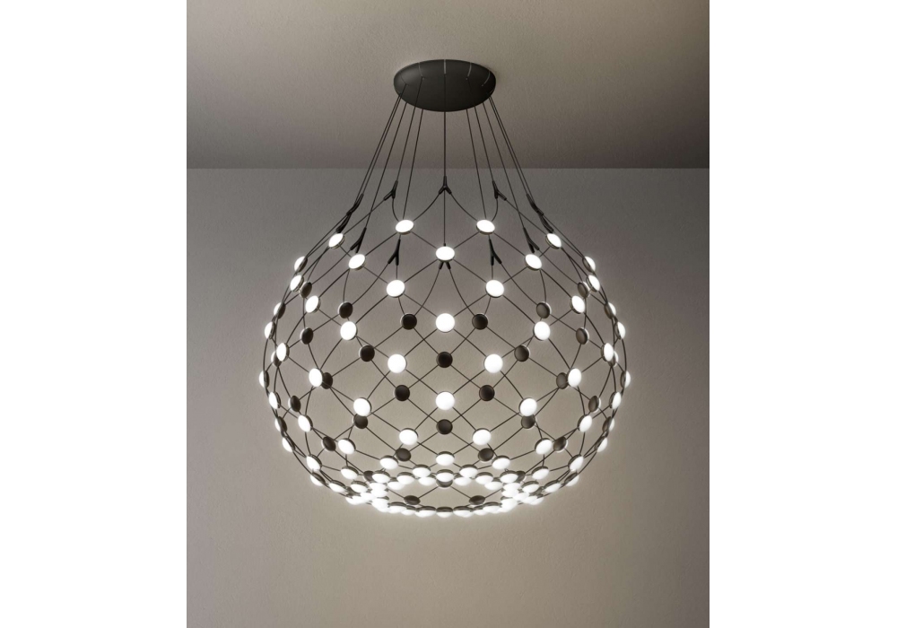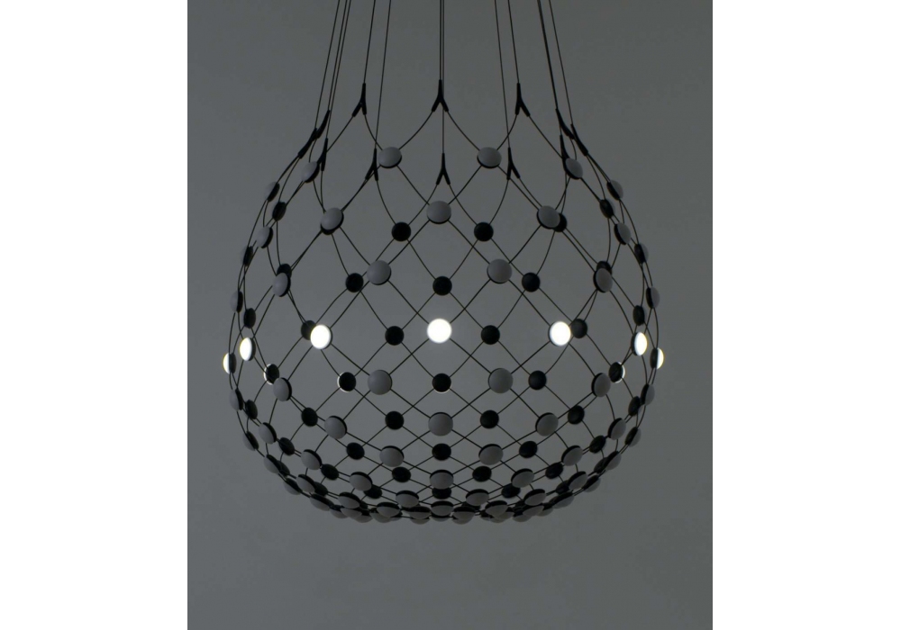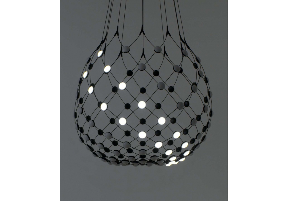 Mesh designed by Francisco Gomez Paz for Luceplan is a pendant lamp with black steel structure and polycarbonate lenses. The lighting is controlled by a phase-cut or wireless dimmer, through a special app that allows you to set remote programmed switching on / off. Available in different versions and dimensions.