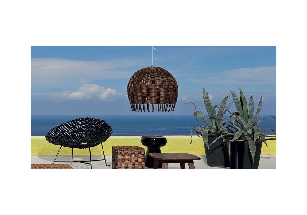 Croco 96 designed by Paola Navone for Gervasoni is a suspension lamp, in woven crocodile rattan.