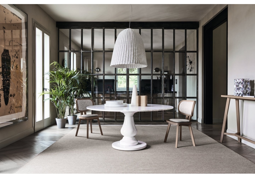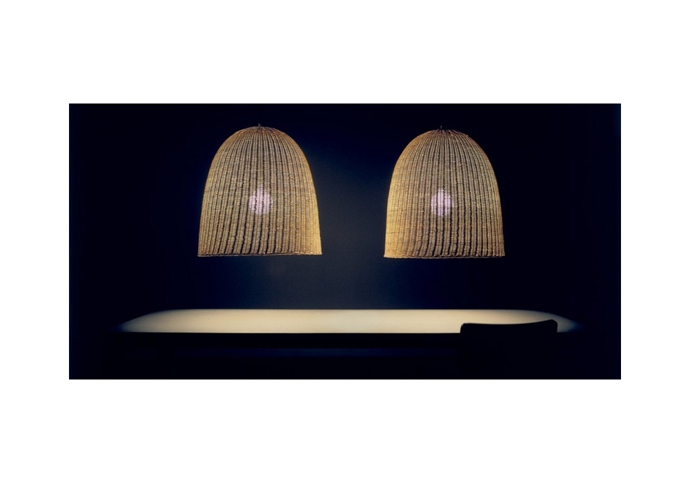 Bell 95 designed by Jasper Startup for Gervasoni is a suspension lamp in natural melange wicker or lacquered wicker in different finishes, bulb not supplied.