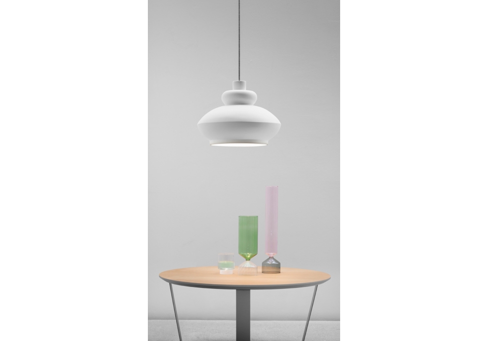 Tora designed by Paolo Cappello for Miniforms is a suspension lamp made of ceramic, available in several colours.