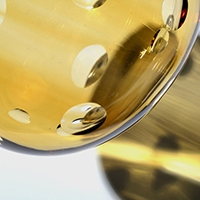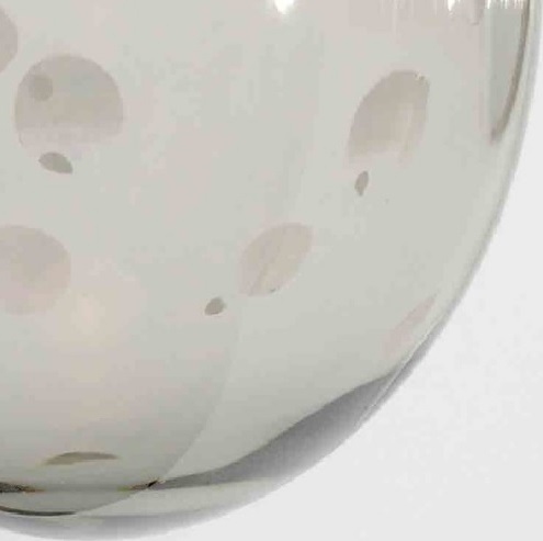 The Kaline is a pendant lamp produced by Atelier Areti. The hand blown crystal glass is composed of two layers, a thick transparent one and a colored thinner coat. Circles are cut into both layers, thus creating the many lenses that cover the surface. Light bulb and transformer included.