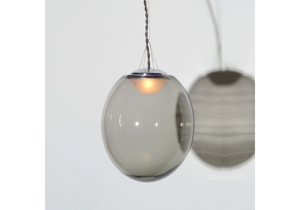 The Gris Collection is a pendant lamp produced by Atelier Areti. It is made by combining layers of grey and clear crystal glass. This technique adds lustre and depth to the glass body. Light bulb and transformer included.