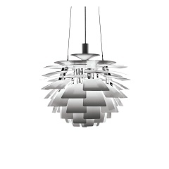 PH Artichoke designed by Poul Henningsen for Louis Poulsen is a pendant lamp with chromed steel frame anchored with 72 laser cut metal sheets. The diffusers are two in white or black painted steel and shield a LED or halogen light source in the dimmable or standard version. PH Artichoke is available in different finishes, sizes and versions.