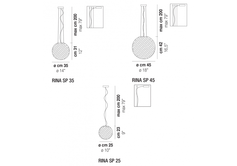 | Shade diameter | Ø 25 cm; Ø 35 cm; Ø 45 cm. |