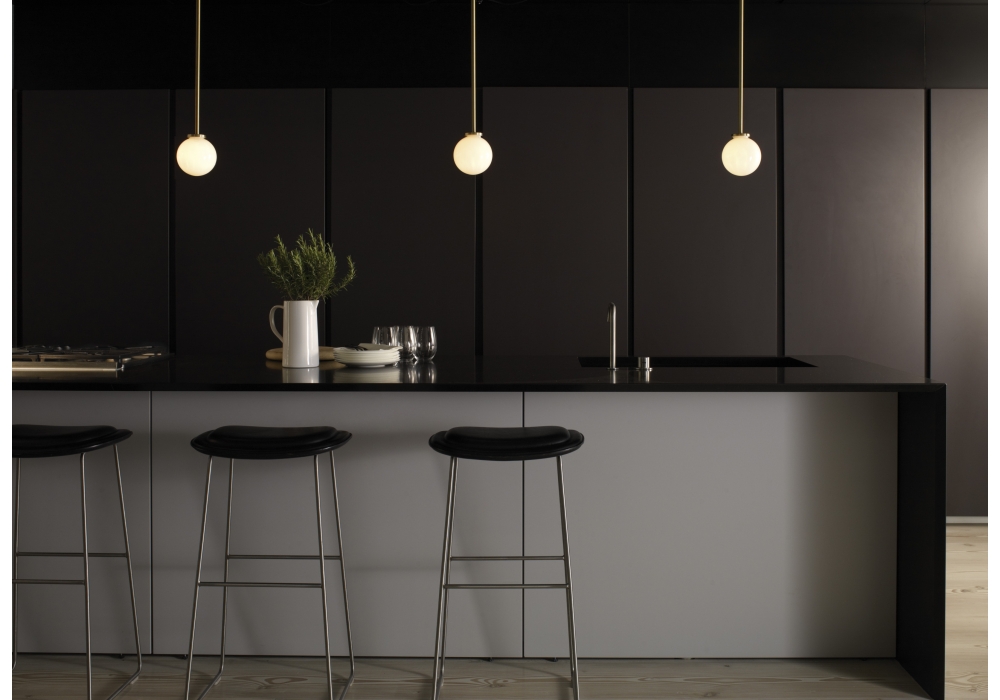 Mezzo designed by CTO Lighting is a pendant lamp made with satin brass structure and opal glass diffuser.
