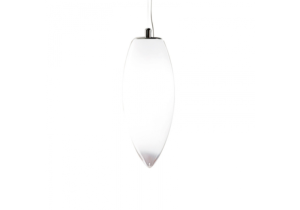 Baco designed by Mauro Olivieri for Vistosi is a pendant lamp structured by the combination of metal and murano glass. The diffuser is in white blown Murano glass and shields a dimmable LED or halogen light source with E27 fitting. Baco is available in different models.