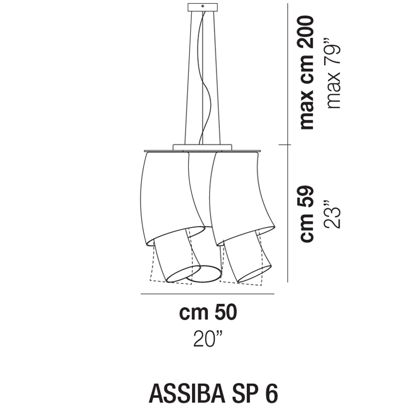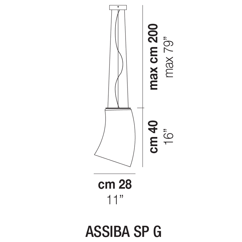 Assiba designed by Mauro Olivieri for Vistosi is a pendant lamp with supporting structure in chromed metal. The diffuser is made of glass and shields a dimmable LED or halogen light source with E27 fitting. Assiba is available in different models and diffuser finishes.