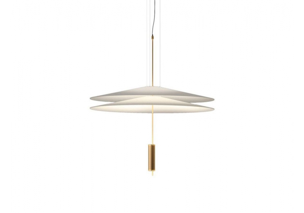 Flamingo designed by Antoni Arola for Vibia is a circular pendant lamp with rosette and vertical rod in painted steel. The discs/diffusers are made of methacrylate and acrylic and shield one or more dimmable LED light sources housed in a cylindrical aluminum body. Flamingo is available in different models, finishes, shades of light sources and dimmability.