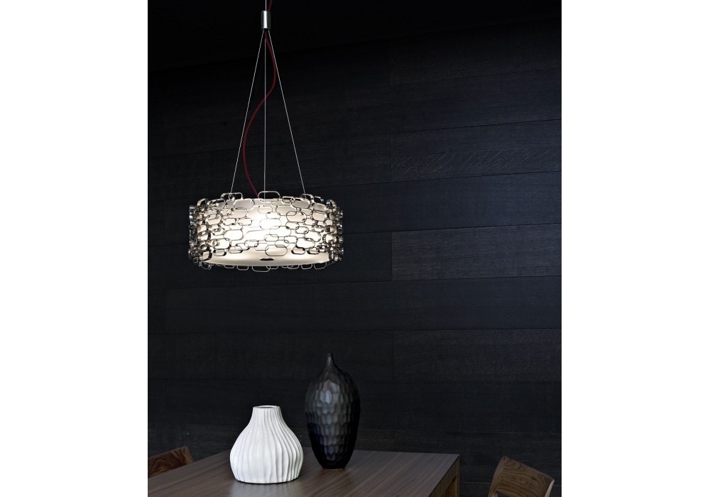 Glamor designed by Dodo Arslan for Terzani is a pendant lamp with a circular shape structured by multiple rings in painted metal. The light source used is of the dimmable LED type. Glamor is available in different finishes.