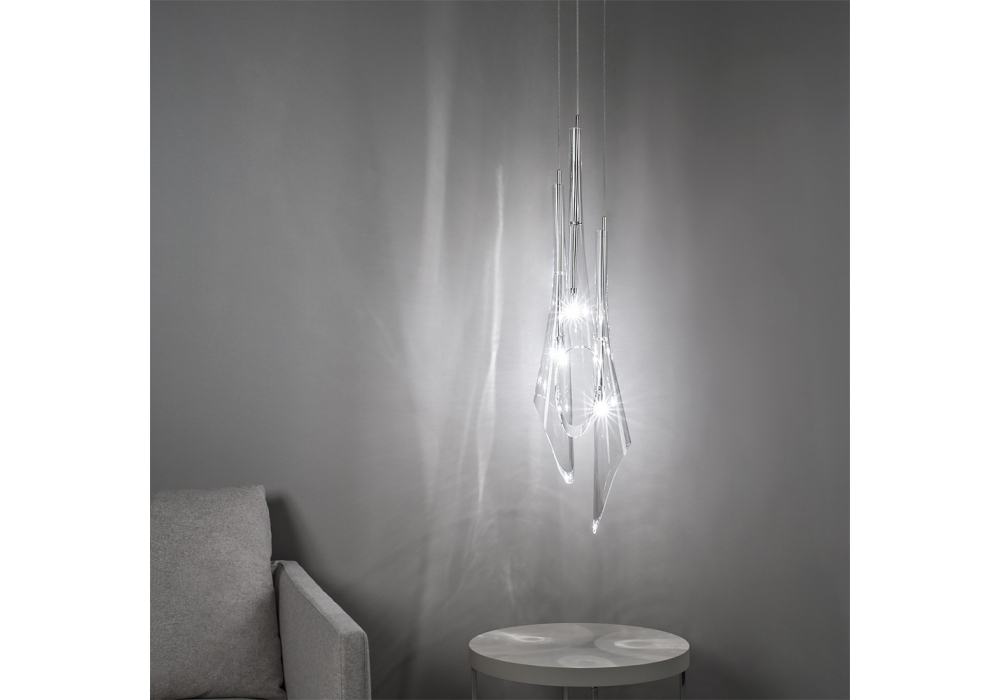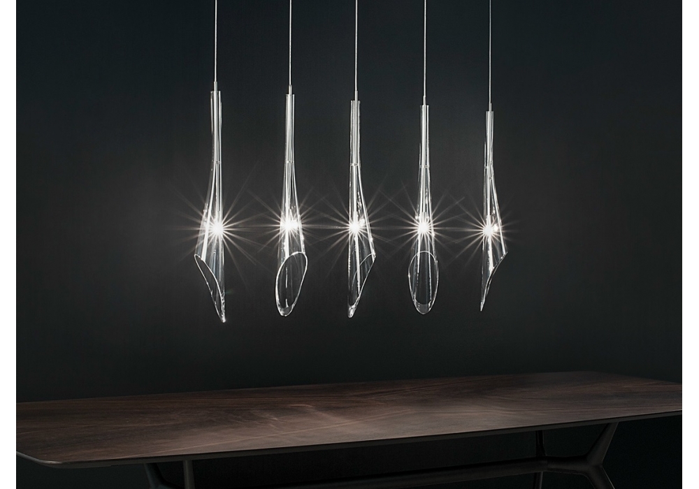 Calle designed by Luca Martorano & Mattia Albicini for Terzani is a pendant lamp with metal supporting structure and diffuser in very fine transparent crystal. The light source used is LED or halogen dimmable in different versions. Calle is available in different models.