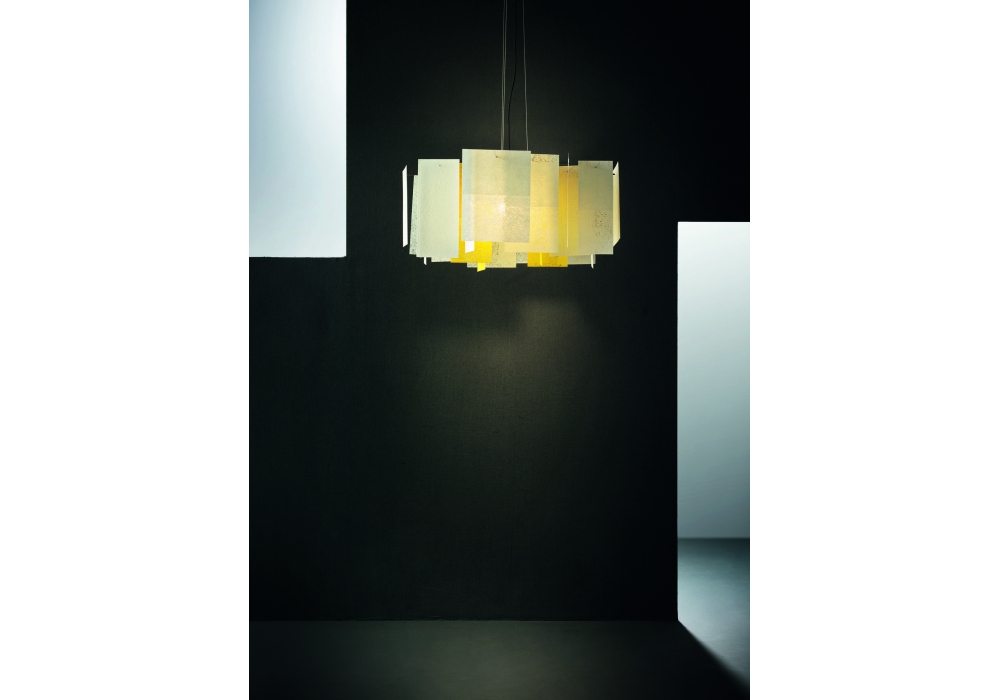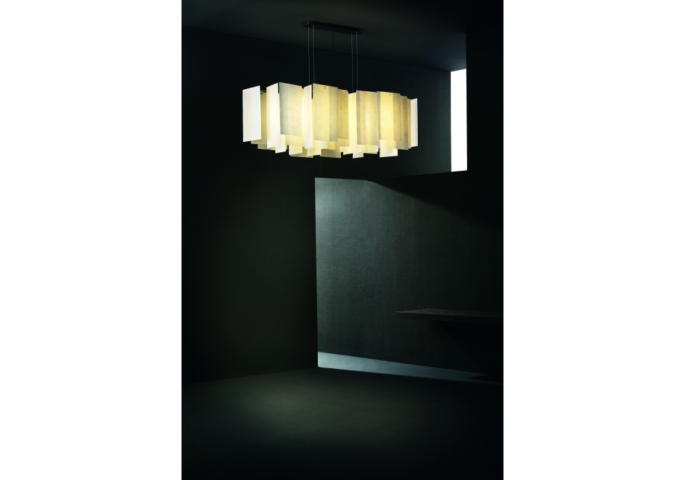 Alexandra designed by Enrico Franzolini for Pallucco is a beautiful suspension lamp available in 3 different types. The traditional Venetian glass lamps, the rigorous geometries of Piet Mondrian and the airy compositions of Alexander Calder: 3 inspirations which converge into a new lighting concept. By overlapping various thin sheets of glass fiber, with ribs showing through and tracing organic patterns, an exclusive, textural object takes shape, able to diffuse in the room, together with the light, a sensation of weightlessness and presence at the same time. Structure in metal with epoxy powder coating RAL7016. Panels in glass fiber, in the color white.