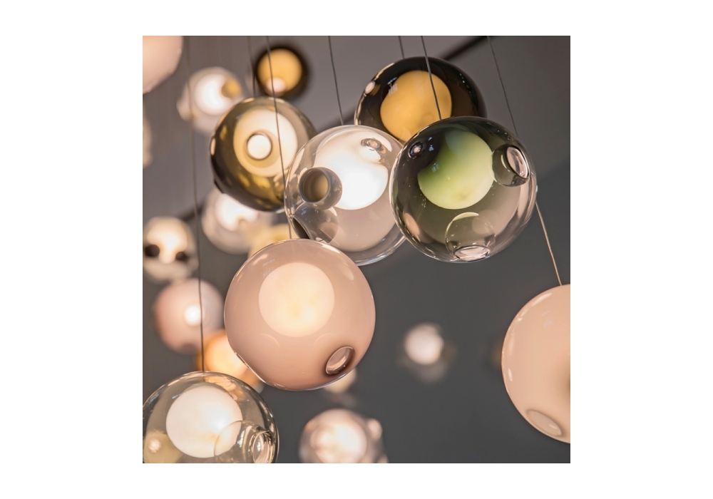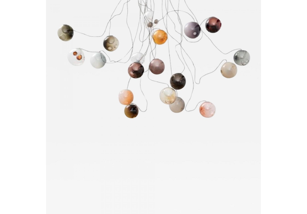 28 designed by Omer Arbel for Bocci is a suspension lamps series where each piece is unique in shape colour depth, tonality, and both number and location of interior satellites, by virtue of the handcrafted manufacturing. It results from an innovative fabrication process that manipulates both the temperature and the direction of air flow into blown glass. Cluster 28 can be crafted in near-infinite colour variations. To create your own personalised lamp click on this link 28.bocci.ca and send us the design you have made.