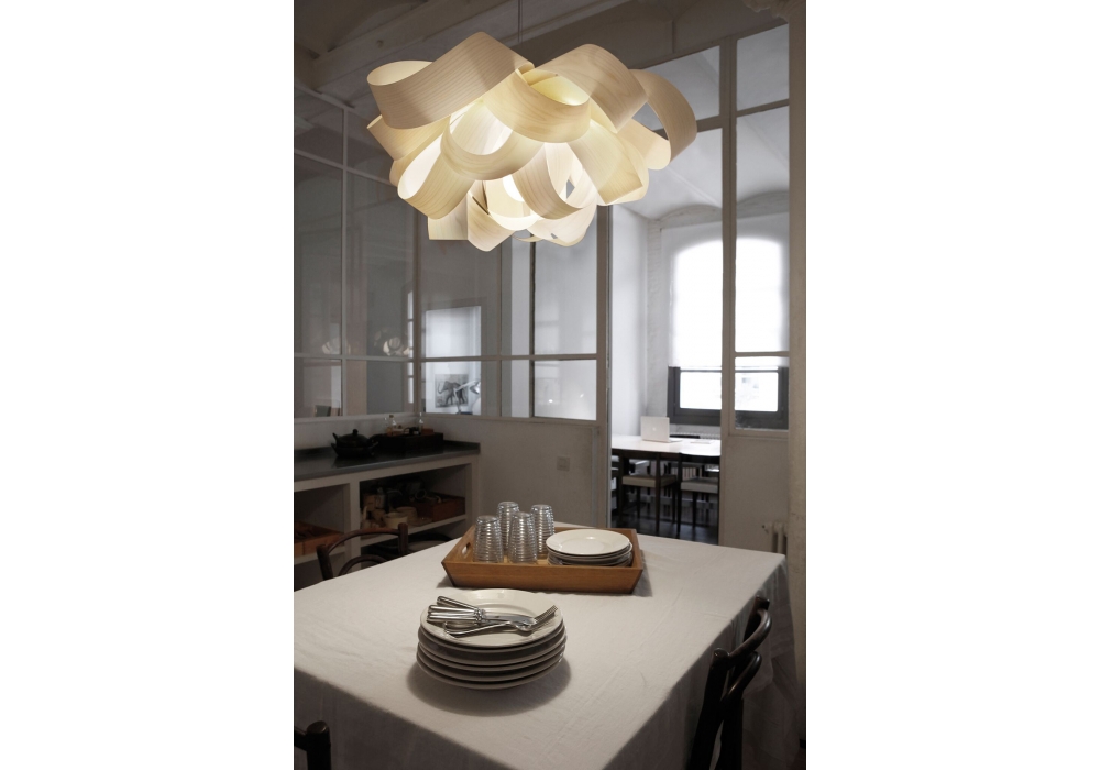 Agatha designed by Luis Eslava Studio for LZF is a pendant lamp made of polywood. Inspired by Agatha Christie, the literature of the fantastic and imaginative design join together to weave a synopsis of the story of this lamp. Available in different versions and different finishes.