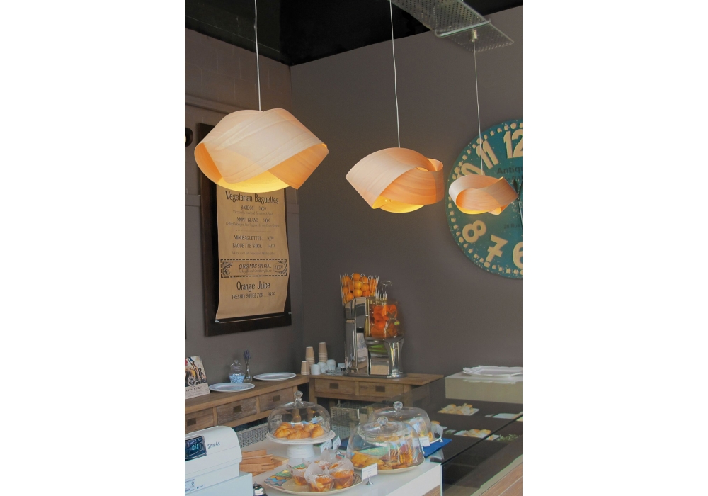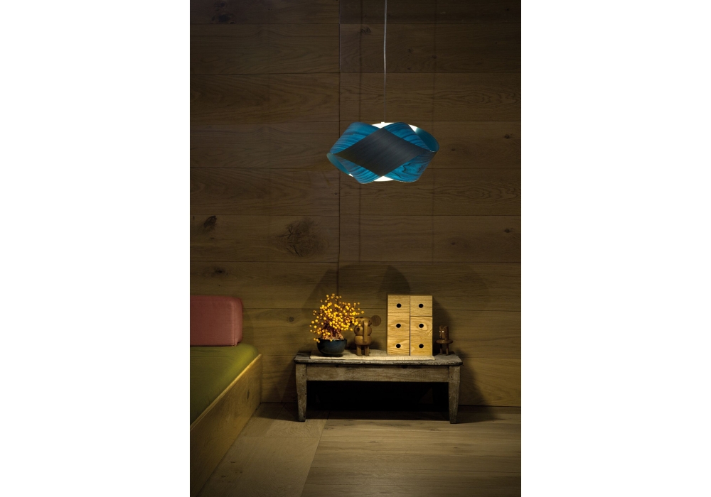 Nut S designed by Studio & Ray Power for LZF is a pendant lamp made of polywood. Two different designs are possible depending on the direction of the torsion. The shade is available in different wood veneer finishes.