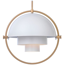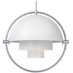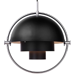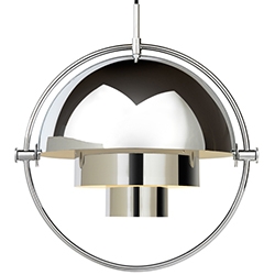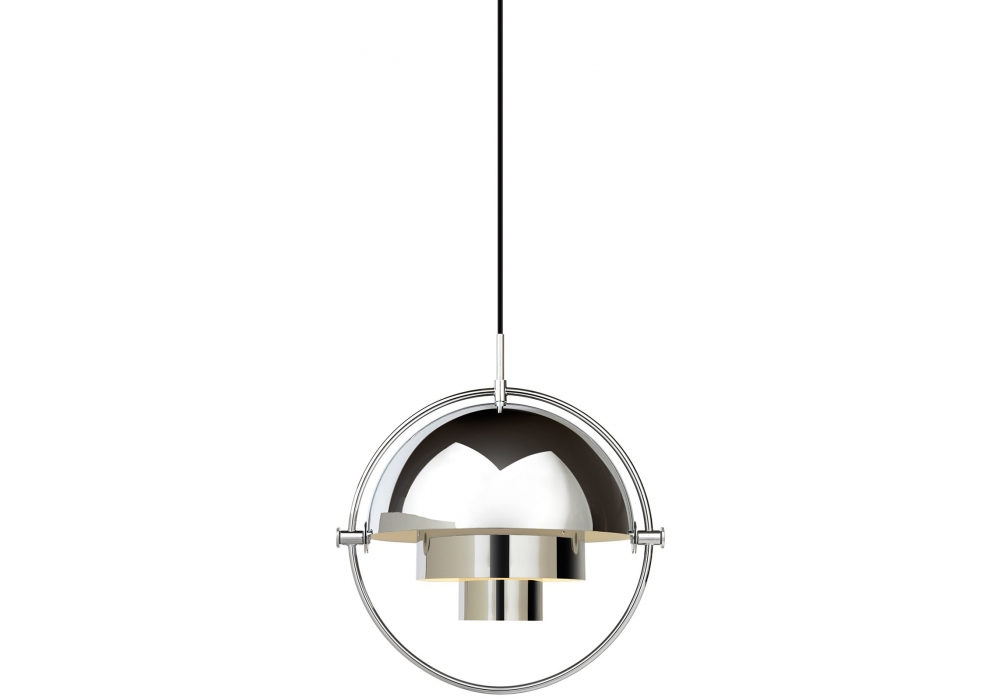 Multi-Lite designed by Louis Weisdorf for Gubi is a pendant lamp made of brass or chrome available in different finishes. This lamp has a timeless expression that fits into any domestic setting, with its characteristic form, rotating the shades, the lamp can be transformed into multiple combinations where the light can be directed upwards, downwards or exude an asymmetrical art light.