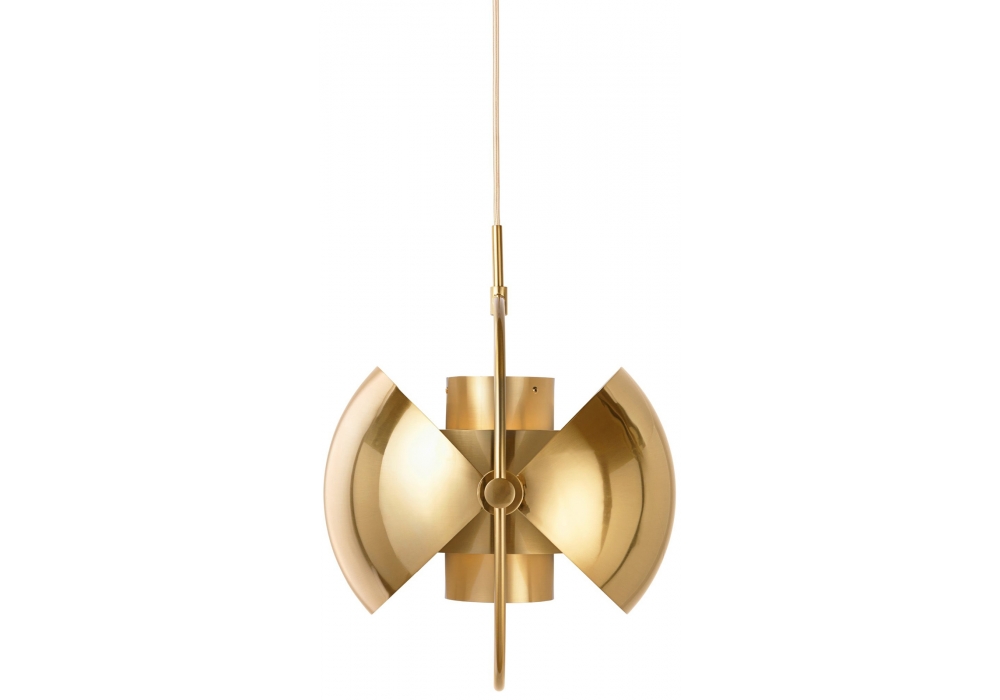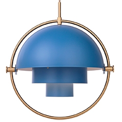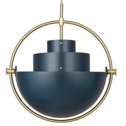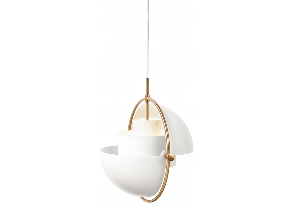 Multi-Lite designed by Louis Weisdorf for Gubi is a pendant lamp made of brass or chrome available in different finishes. This lamp has a timeless expression that fits into any domestic setting, with its characteristic form, rotating the shades, the lamp can be transformed into multiple combinations where the light can be directed upwards, downwards or exude an asymmetrical art light. The all chrome and black versions come with black textile cord. The all brass and the blue versions come with a golden textile cord. The white versions come with white textile cord.