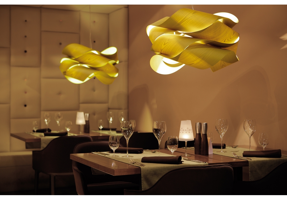 Link designed by Ray Power for LZF is a pendant lamp made of wood with metal canopy. This lamp with its sumptuous curves create an organic yet regular pattern that is endlessly engaging to the eye and glows in tones from light to dark. Available in different finishes and two dimensions.