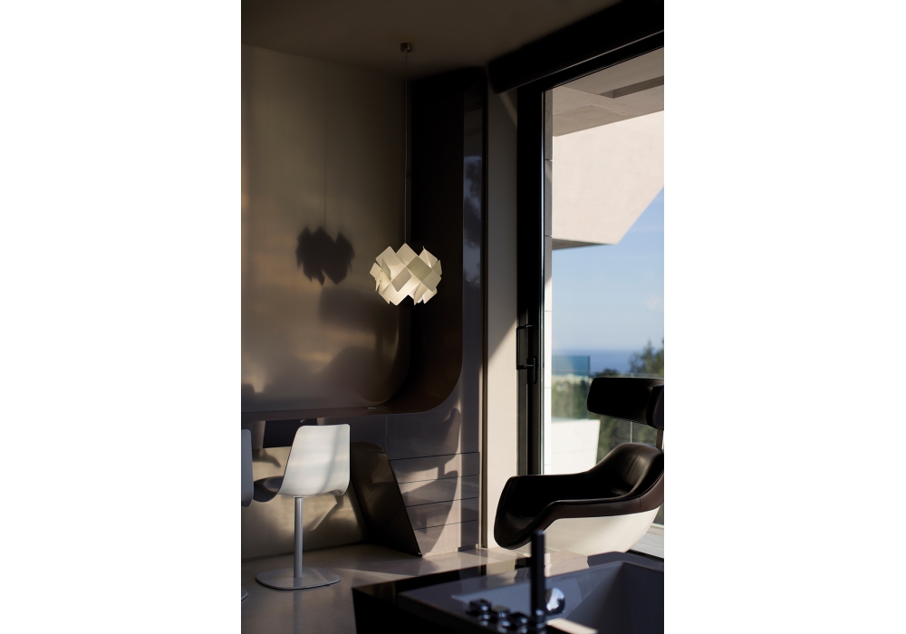 Escape designed by Ray Power for LZF is a pendant lamp made of wood with structure, cable and ceiling rose in metal. This lampa has a the domino effect in lighting, that creates a domino circle caught in a constant state of gravity defiant falling. Available in different finishes.