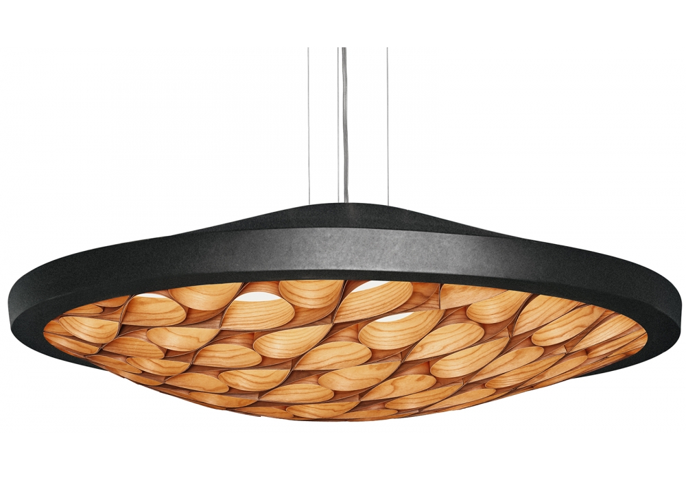 Cervantes S designed by Burkhard Dämmer for LZF is a pendant lamp made of wood veneer and metal outer shell in three finishes. Cervantes has a design, in line with the tradition of latticework, with features strips of wood veneer that spread out in all directions, creating a striking concave effect.