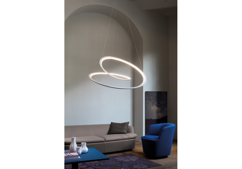 Kepler designed by Arihiro Miyake for Nemo is a pendant lamp with powder coated extruded aluminum structure. The light source adopted is of the dimmable LED type. Kepler is available in different finishes and versions.