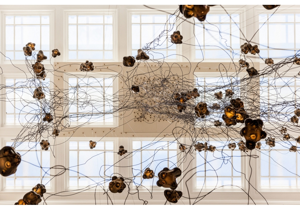 57.19 designed by Omer Arbel for Bocci is a suspension lamp with 19 diffusers. The 57 series is a collection of suspension lamps in which each pendant is the result of an innovative manufacturing technique that makes the product unique in terms of materials and shape. It consists in the trapping and injection of air inside the molten glass components which subsequently join together. A combination of innovation and craftsmanship. Diffusers available in four different finishes.
