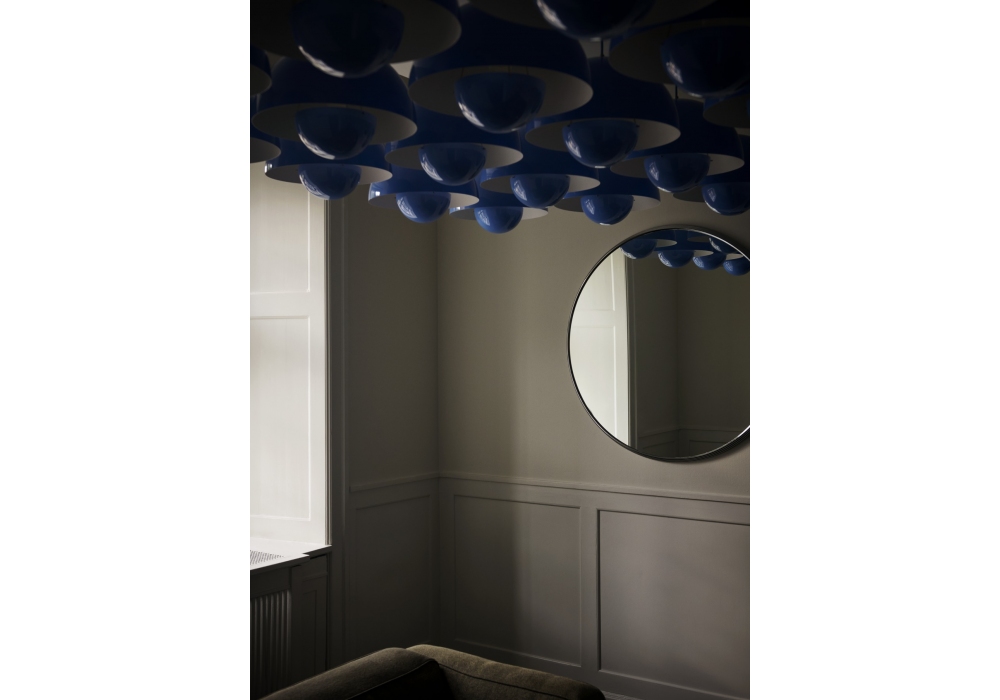 Flowerpot designed by Verner Panton for &Tradition is a pendant lamp made of lacquered or plated steel and fabric cable. Available in different finishes.