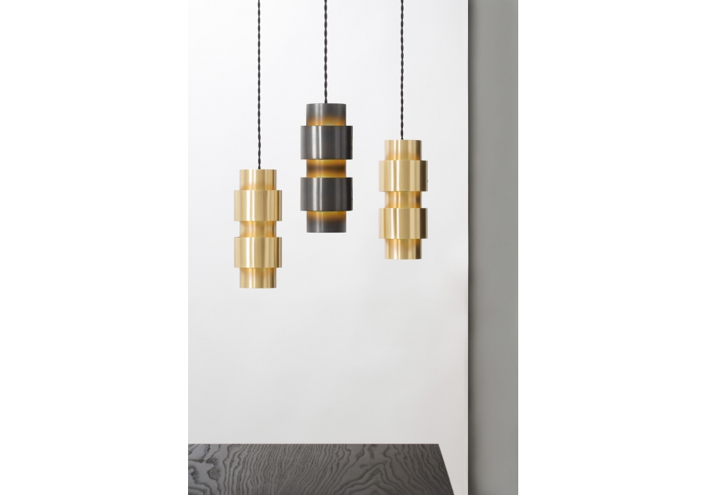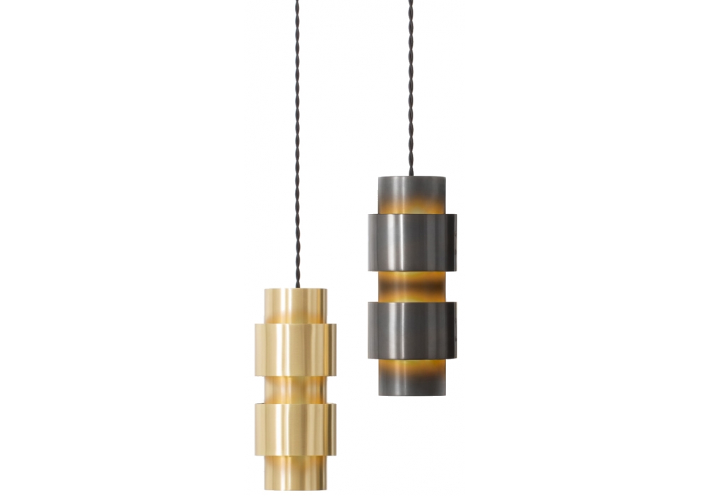 Ring designed by CTO Lighting is a pendant lamp made in satin brass or in bronze and satin brass. Black silk braided flex cable.