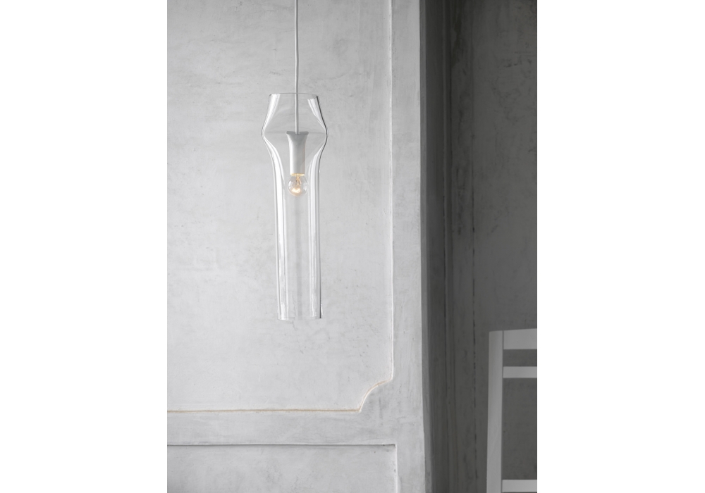 Press Lamp designed by Nendo for Lasvit is a beautiful pendant made of hand-blown glass. Unusual in that relies on no metal form, its compression produces a soft, organic form and imbues each lamp with a singular visual aspect. This product is available in different finishes.