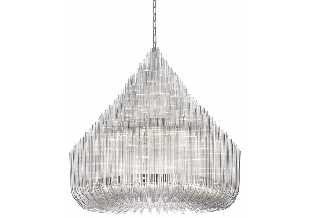 Ludwig designed by Maurizio Galante for Lasvit is a beautiful pendant made of hand-blown glass. The contours remain loyal to their neoclassical style chandelier references, the use of industrial glass tubes imbues this family of spectacular lights with an airy and strikingly modern elegance. This product is available in different dimensions.